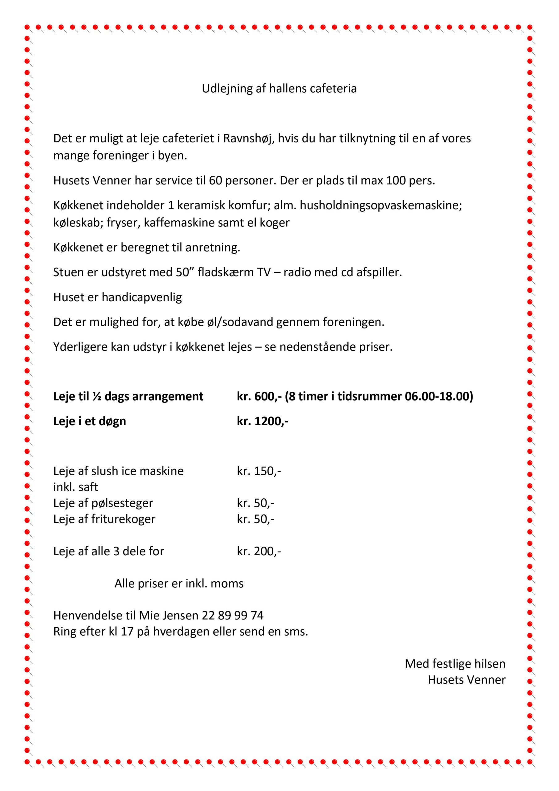 Leje af Cafeteriaet ved Ravnshøj Hallen